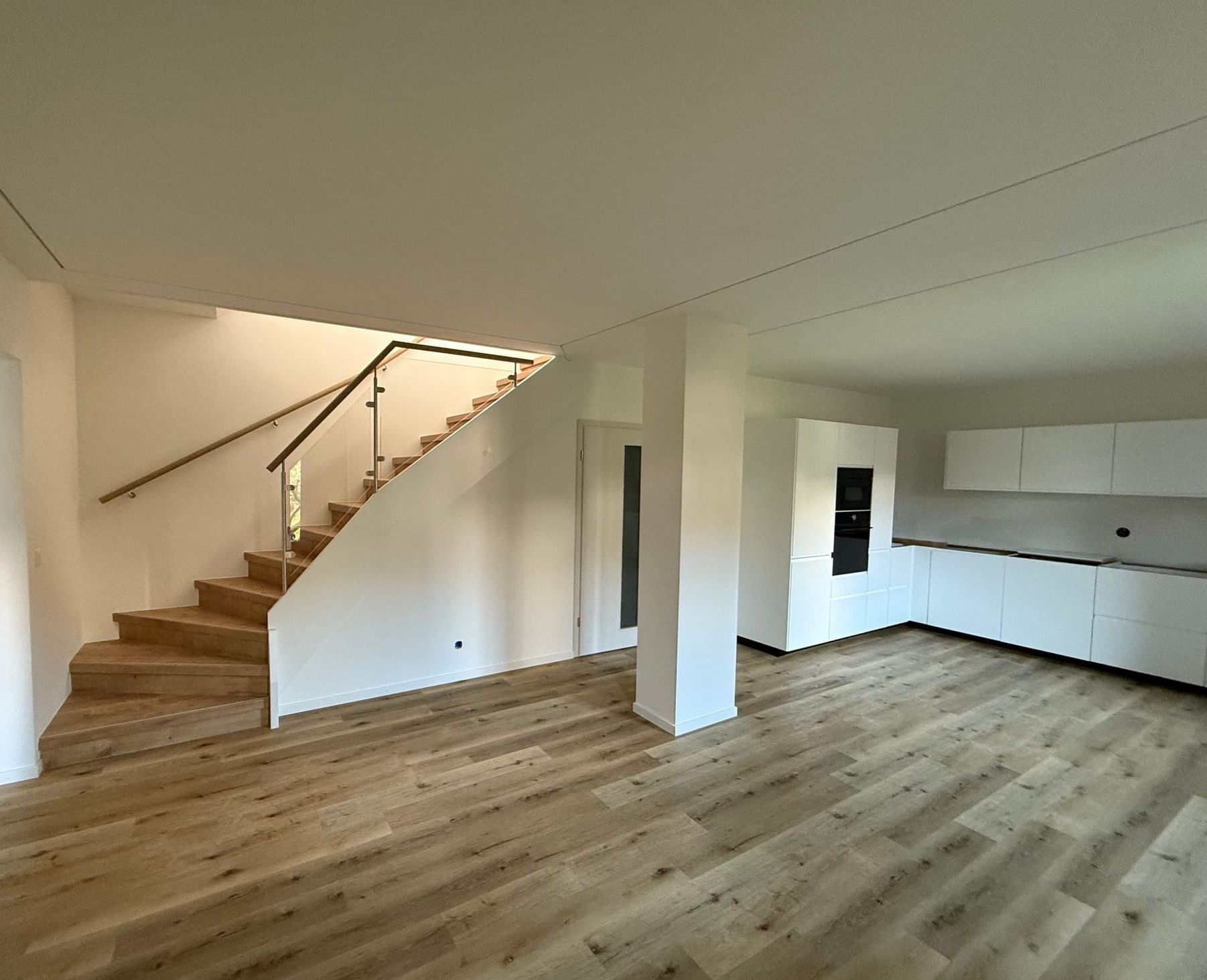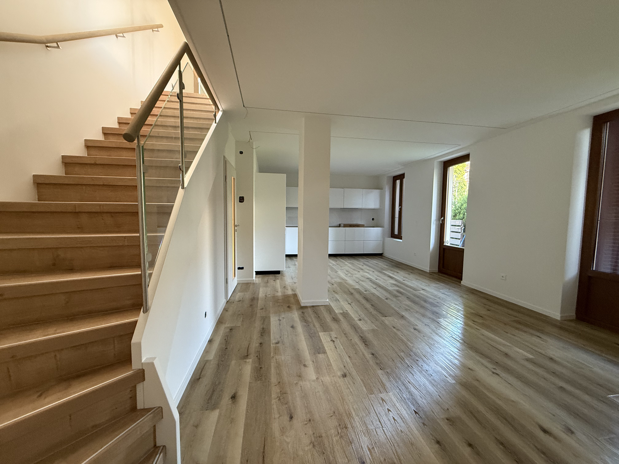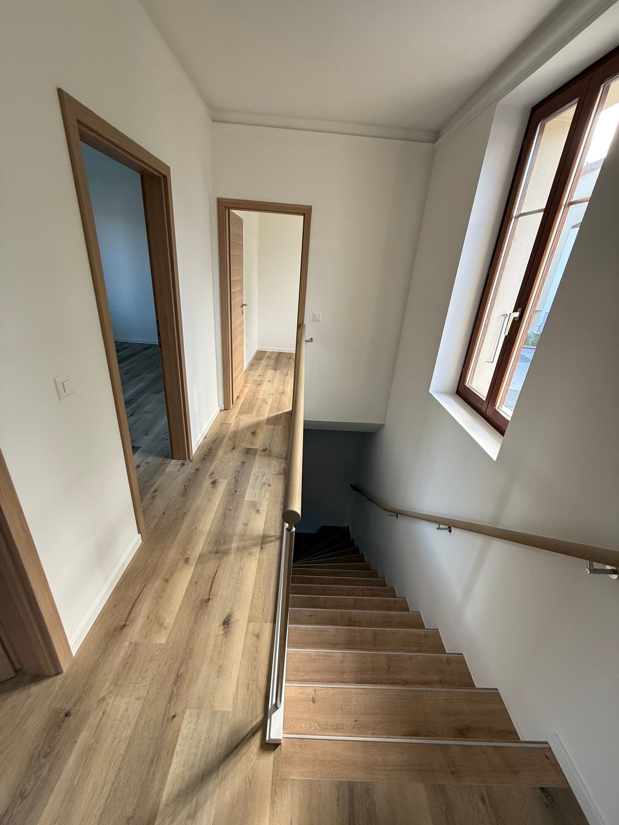 Moderniser une mezzanine, c’est savoir sublimer son caractère tout en lui apportant une touche contemporaine. Les poutres apparentes, mises en valeur par des lambris teintes en blanc, créent une ambiance à la fois chaleureuse et lumineuse.